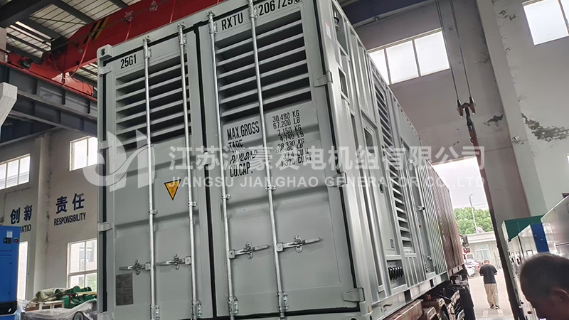 一臺1000kW康明斯動力靜音集裝箱柴油發(fā)電機組發(fā)貨,我公司工程師對機組進行了全面的出廠前檢測調(diào)試后,各項指標符合國家標準,下圖為機組出廠現(xiàn)場: