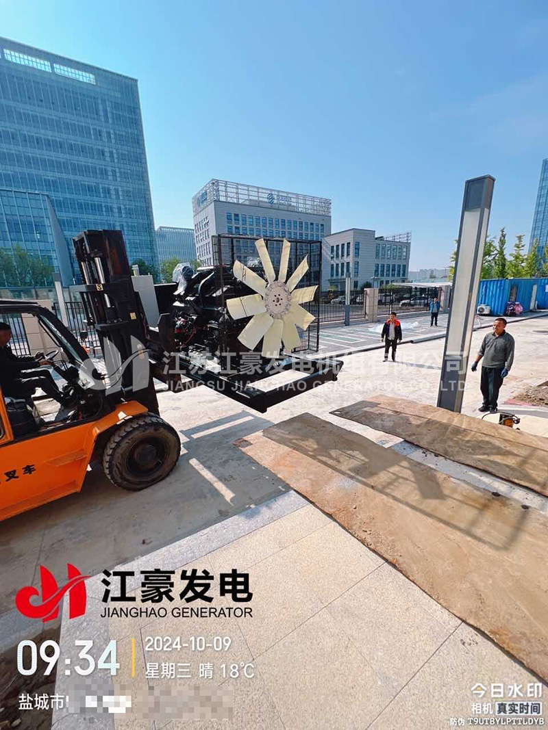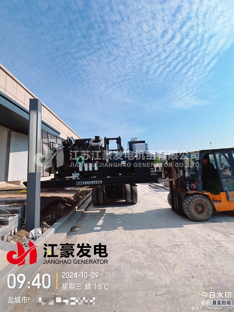 江蘇鹽城一臺640kW康明斯柴油發電機組發貨安裝就位交付使用