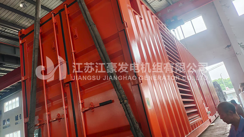 一臺1500kW康明斯集裝箱式柴油發電機組發貨,我公司工程師對機組進行了全面的出廠前檢測調試后,各項指標符合國家標準,下圖為機組出廠現場